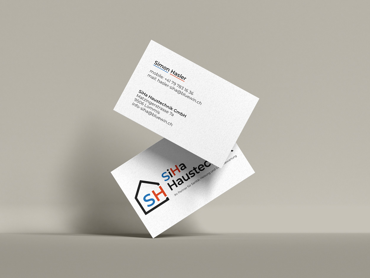Aufgabenstellung: Für die neu gegründete Firma SiHa Haustechnik GmbH wurde ein komplettes Erscheinungsbild entwickelt. Dazu gehörten die Gestaltung des Logos, das Erstellen des Briefpapiers sowie der Visitenkarten. Das Design soll die Bereiche Sanitär und Heizung modern, klar und vertrauenswürdig repräsentieren..